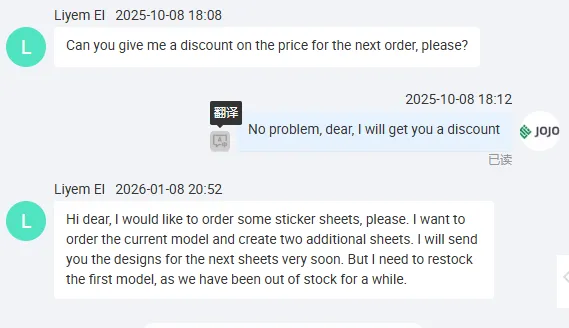 La repetición del negocio subraya el reconocimiento del mercado dePaquete JOJOexperiencia en la producción de productos adhesivos especializados. El enfoque de la empresa en la impresión y la fabricación de etiquetas la ha posicionado como un socio confiable para las marcas que buscan elementos de embalaje distintivos.