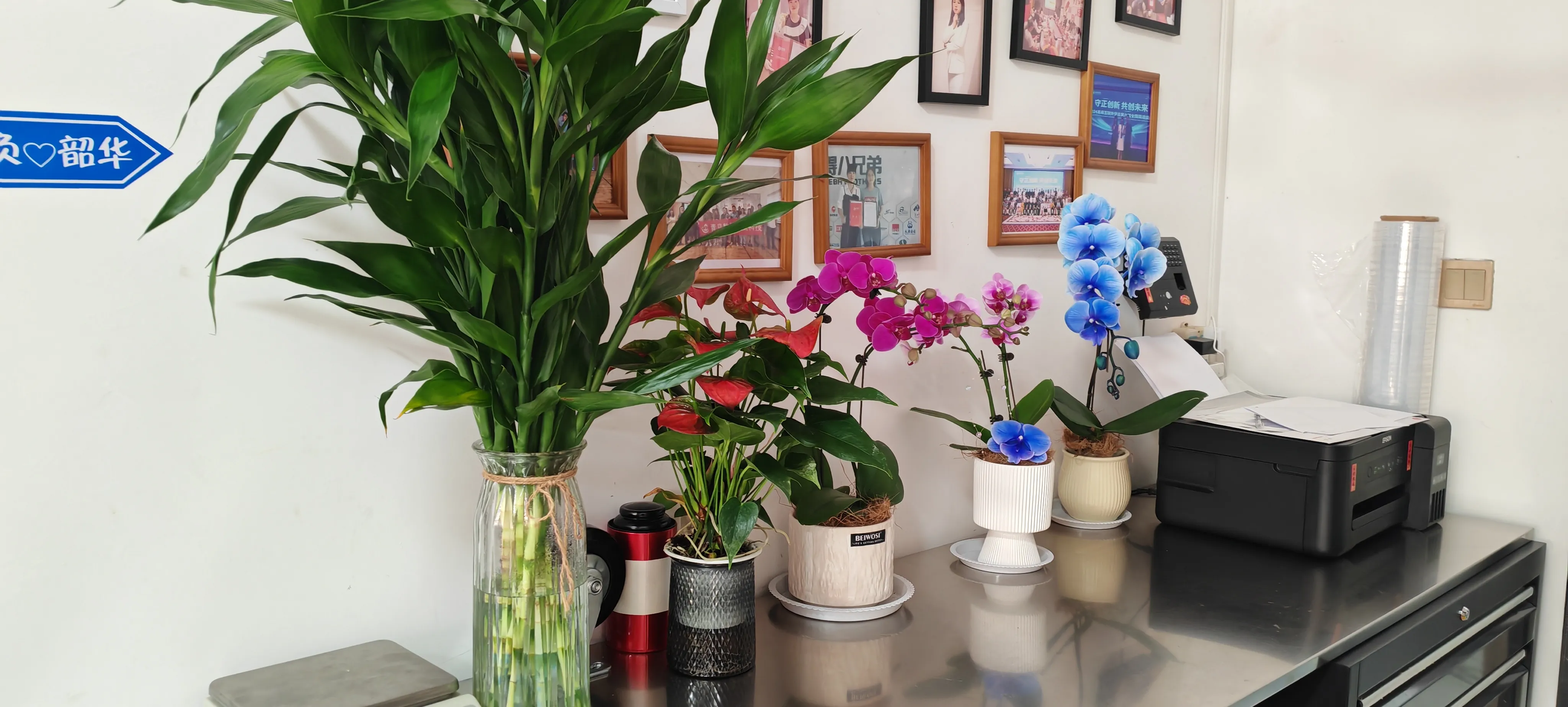 La Sra. Men, gerente de comercio exterior, dijo con una sonrisa: "Antes el ambiente de la oficina estaba limpio, pero carecía de sensación de naturaleza. Ahora, con la decoración de estas flores y plantas verdes, todo el espacio se ha vuelto animado. Al mirar las plantas verdes durante los descansos del trabajo, mis ojos también pueden relajarse". El cuidado del jefe hace que todos sientan la calidez de la empresa. Estamos más motivados para trabajar. Durante la pausa para el almuerzo, también podemos cuidar las flores y plantas con los compañeros, lo que añade mucha diversión.